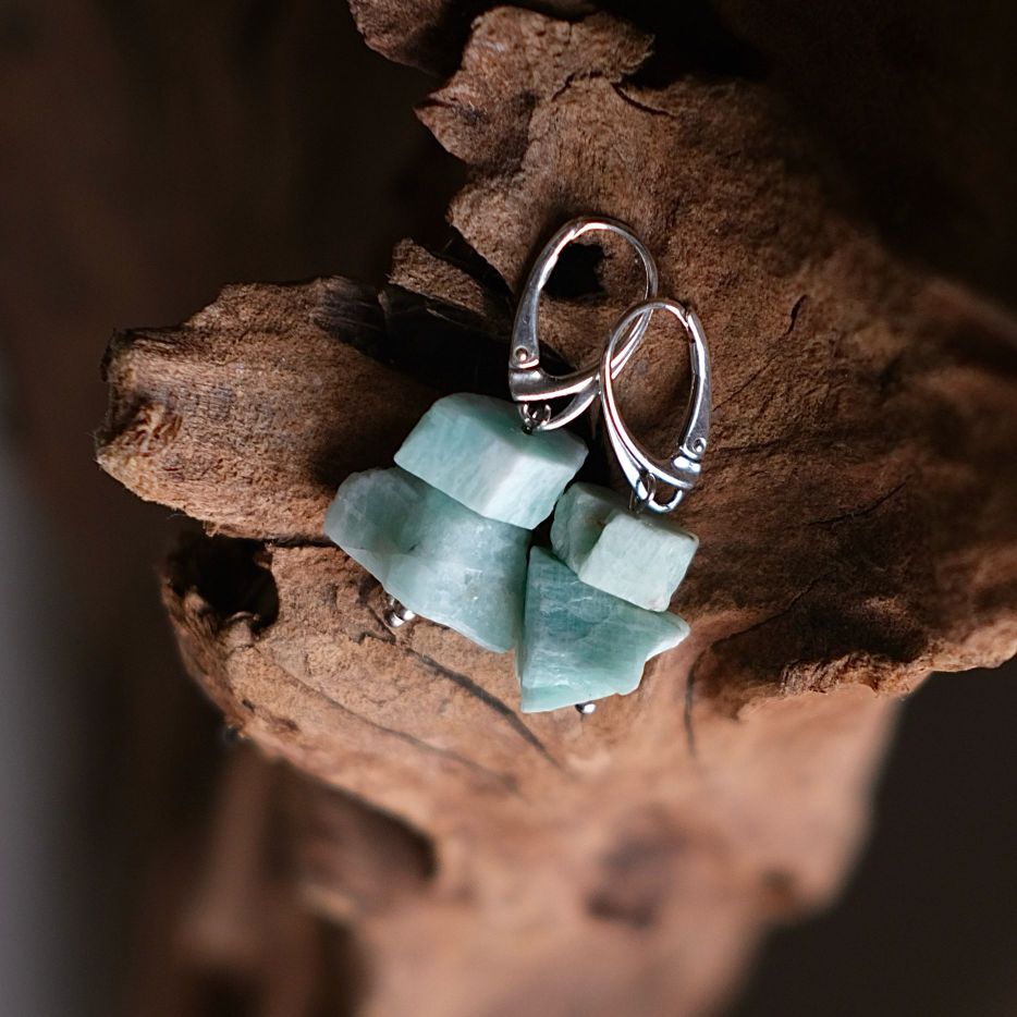Amazonito auskarai neapdirti gabalėliai
