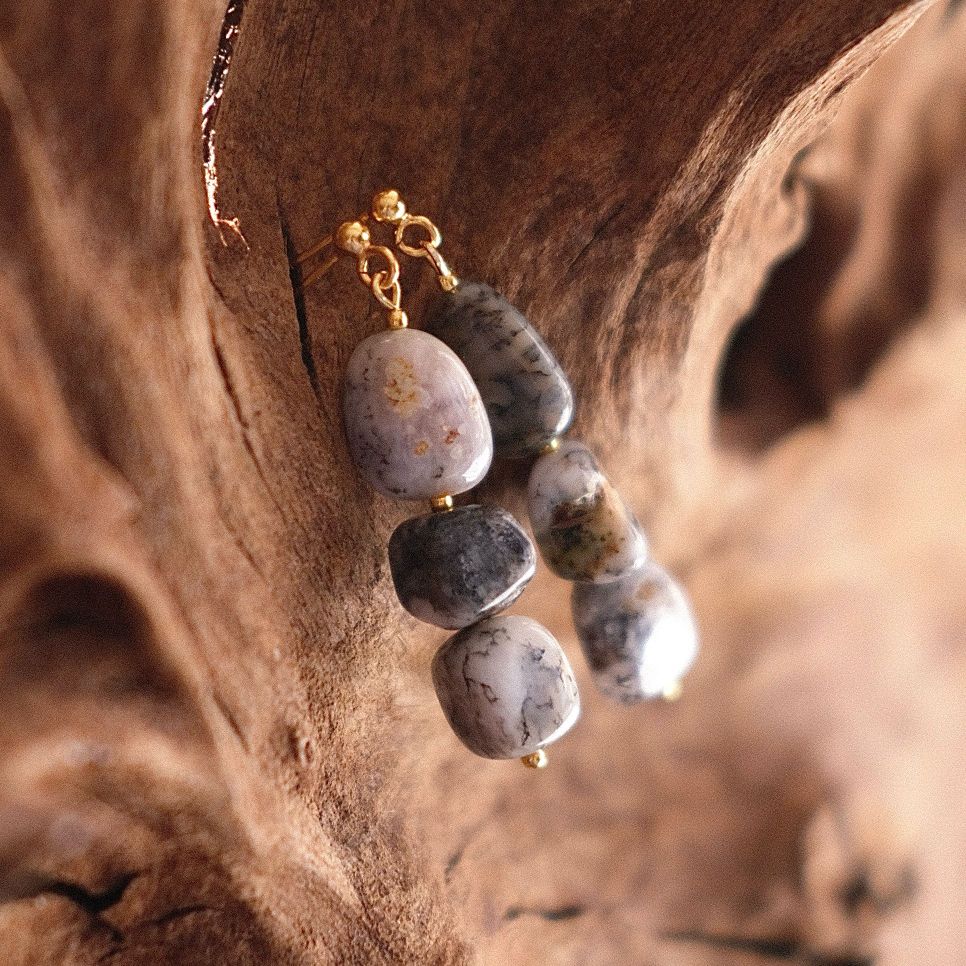 Dentrinio opalo auskarai, ilgis 5 cm