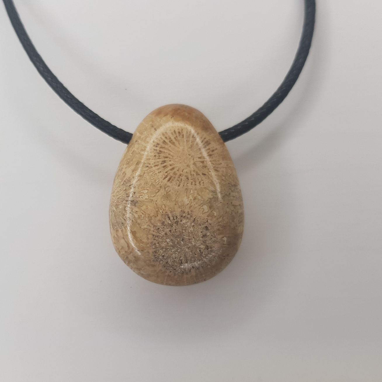 Fosilinio koralo pakabukas LAŠELIS SU SKYLUTE