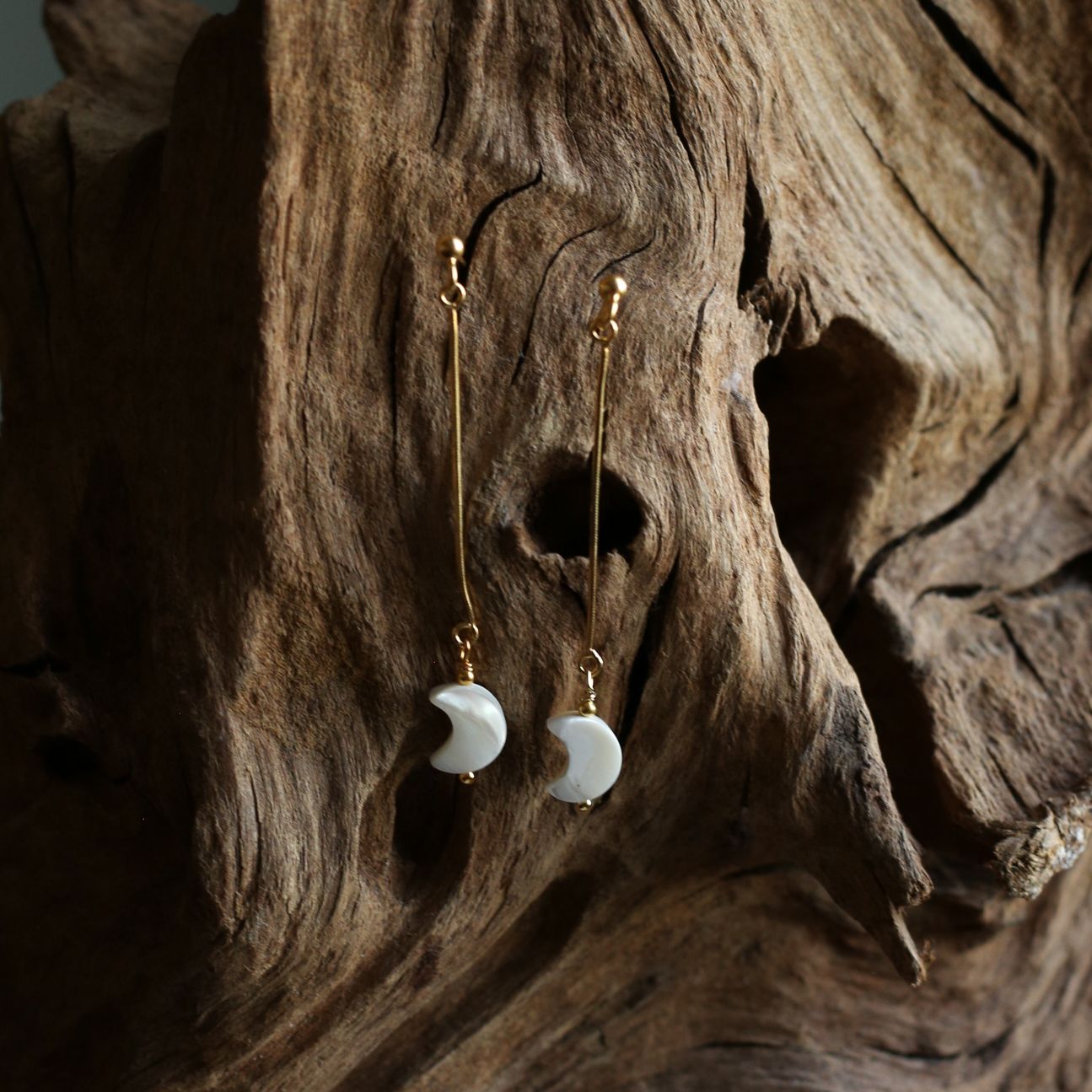 Kriauklės auskarai MĖNULIUKAS KABANTIS, ilgis, 5,5 cm
