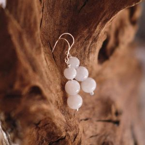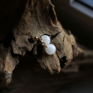 Mėnulio akmens auskarai 10 mm prie ausies