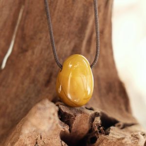 Mukaito jaspio pakabukas LAŠELIS su skylute geltonas